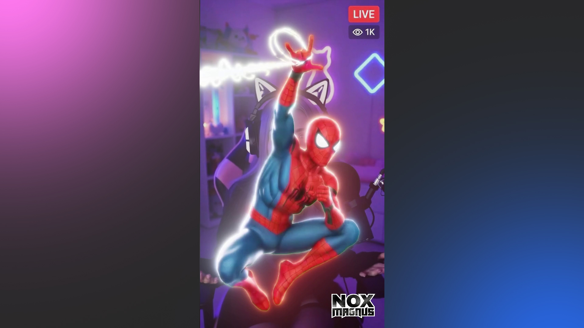 Es perfecta para lives de videojuegos (especialmente juegos de acción, superhéroes o mundo abierto) y para directos aptos para todo público, donde quieras sorprender al chat con una aparición épica de Spider Man para saludar, celebrar o marcar momentos especiales.